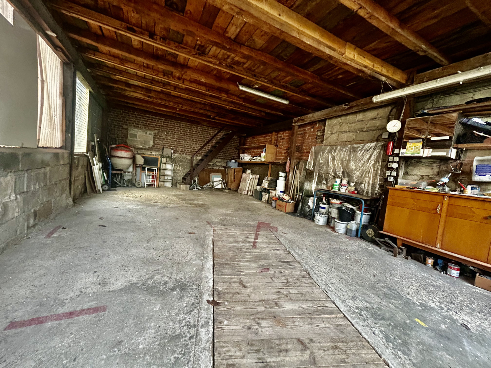 A L EXTERIEUR VOUS DISPOSEREZ D 'UN GARAGE DE 50 M2 AVEC ETAGE DE LA MEME SUPERFICIE , FACILEMENT AMMENAGEABLE EN LOGEMENT .